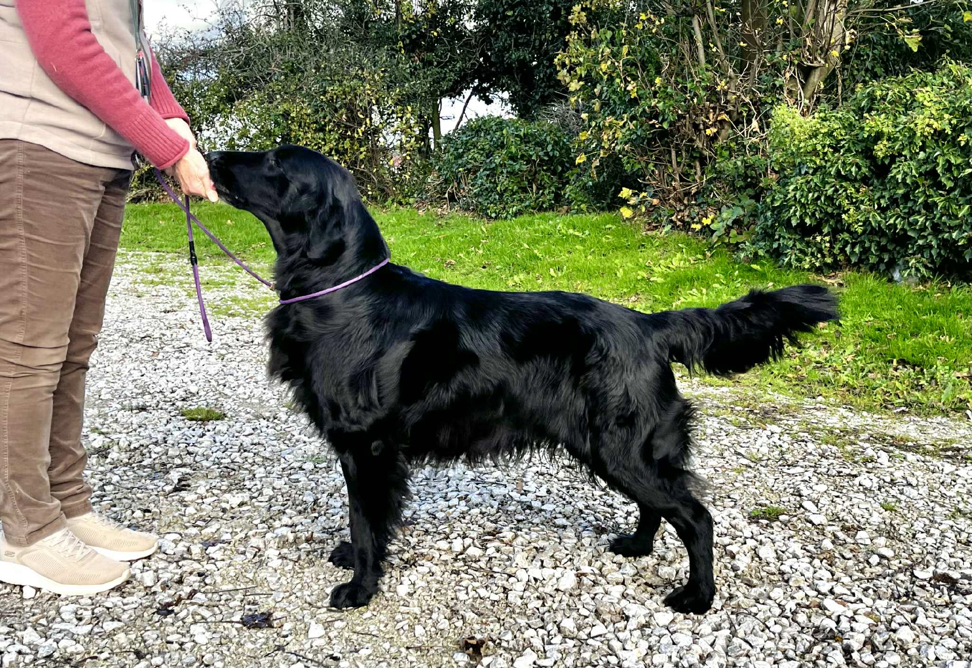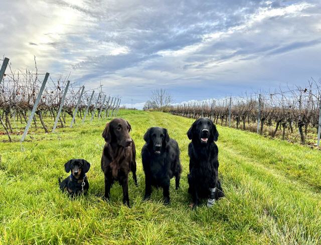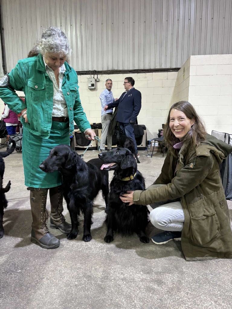 So, jetzt komme ich endlich dazu von unserer Reise nach England zu berichten. Da Hugo und Nick nicht mehr wirklich entspannt waren letzten Donnerstagabend, hatten wir uns dazu entschieden früh am Freitagmorgen aufzubrechen. Also ging es um 4 Uhr morgens los in Richtung Calais. Da es sehr stürmisch war, haben wir anstatt der Fähre den Shuttle-Zug genommen. Die Einreise verlief problemlos. Von Folkstone bis London war der Verkehr noch gut, danach steckten wir, bis wir an Birmingham vorbei waren, sozusagen im Dauer-Stau. Gegen 19 Uhr kamen wir dann endlich an unserem Hotel in der Nähe von Shrewsbury an. Für den nächsten Morgen hatten wir uns mit Diane (Di), der Besitzerin von Jamie verabredet, um alles weitere zu besprechen. Auch Jamie konnten wir kennenlernen und wir waren uns anschließend beide einig, dass er der Richtige für Whisper ist. Wir hatten beschlossen, dass wir nochmal einen Progesterontest mit Whisper machen und im Nachhinein war es auch gut, dass wir den Test gemacht haben. Es stellte sich nämlich heraus, dass der Wert bei umgerechnet 6,1ng/mL lag, der Eisprung findet ungefähr zwischen 4-8ng/mL statt. Es war deshalb die Empfehlung, das Decken am Montag und am Mittwoch zu probieren, da die Eizellen nach dem Eisprung noch 2-3 Tage reifen müssen, bevor sie befruchtungsfähig sind. Also hieß es erstmal abchecken, ob wir länger bleiben können. Wir haben uns dann auf einen Kompromiss (Decken Montagvormittag und Dienstagnachmittag) geeinigt, da Kristofs Chef am Donnerstag Abschied gefeiert hat und wir nicht direkt nach dem Decken wieder nach Hause fahren wollten. Der Zeitvertreib fiel uns nicht schwer, denn die Gegend dort ist sehr schön und außerdem war am Sonntag eine Show, zu der auch Ellas Züchterin Gill gemeldet hatte. So besuchten wir samstags Kedleston Hall und einen Farmshop in Derbyshire, abends waren wir dann bei Di und ihrem Mann Mike zum Abendessen eingeladen und konnten auch ihre anderen Hunde kennenlernen. Sonntags fuhren wir zur Midland Counties Show und zu unserer Überraschung haben wir dort auch noch viele weitere Freunde getroffen, unter anderem Jane (die Besitzerin von Ellas Papa) und Lyn (die Besitzerin von Ellas einzigem Enkel). Es war ein sehr emotionales Wiedersehen! Am Montagmorgen haben wir uns dann mit Di getroffen und sind nach Belper gefahren, wo sie eine erfahrene Züchterin organisiert hatte, da es für Whisper das erste Mal war. Das Decken klappte, allerdings ohne hängen. Nach einem Tee haben wir noch Welpen geknuddelt und bekamen eine Geschichtsstunde über Belper und den "Old Nick". Zum Essen fuhren wir dann in ein wirklich tolles Pub und danach noch zu Di und Mike auf ein Glas leckeren Gin. Den Dienstagmorgen haben wir in Shrewsbury, der Geburtsstadt von Darwin, verbracht und fuhren anschließend wieder nach Belper. Das Decken klappte erneut, auch wieder ohne hängen. Zum Essen haben wir uns im "Red Lion" getroffen, wo wir noch einen sehr schönen gemeinsamen Abend hatten. Am Mittwochmorgen haben wir uns nach dem Frühstück wieder auf den Heimweg gemacht. Wir waren pünktlich am Tunnel (es war wieder sehr windig) und die lange Fahrt durch Frankreich regnete es ununterbrochen. Aber wir kamen ohne Stau sehr gut durch und waren um 23 Uhr wieder zu Hause. Es waren wirklich sehr schöne Tage in England! Wir konnten Jamie auch im Alltag kennenlernen und er hat wirklich einen super tollen entspannten Charakter! Wir sind sehr dankbar, dass Di und Mike uns Jamie für Whisper gegeben haben und auch für ihre Gastfreundlichkeit und Unterstützung! Jetzt heißt es Daumen drücken, damit wir beim Ultraschall in ca. 4 Wochen kleine Herzchen schlagen sehen!