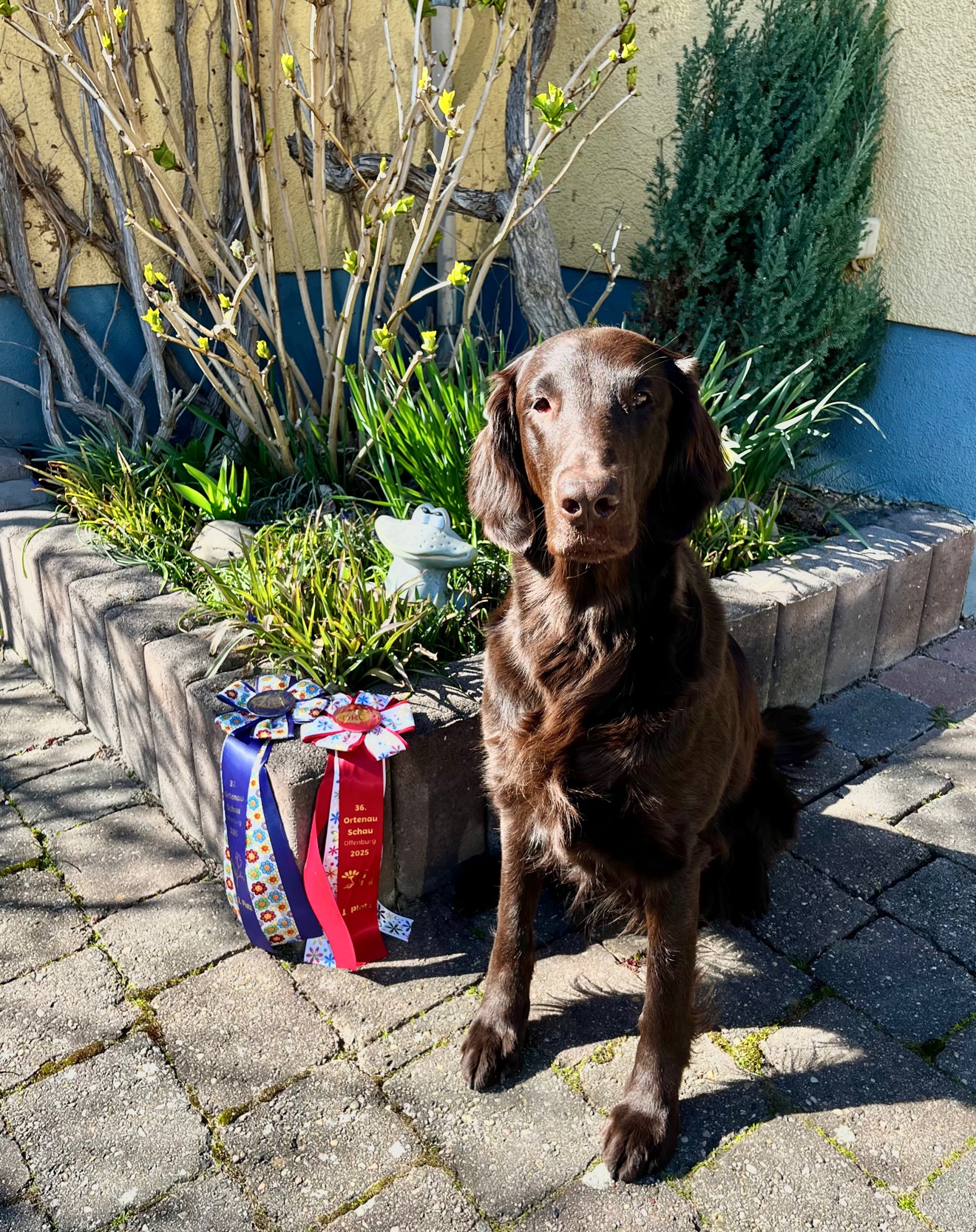 07. Oktober 2025: Whisper lässt mit der Läufigkeit noch auf sich warten... wir üben uns in Geduld und freuen uns unterdessen über Easy, die den Lünecup in F mit sg besteht und ihre Zuchtzulassung erhalten hat, und über die Judges Choice Auszeichnung von Fate beim internen Novice WT des RTT! Herzlichen Glückwunsch Ulrike und Nicole!!!