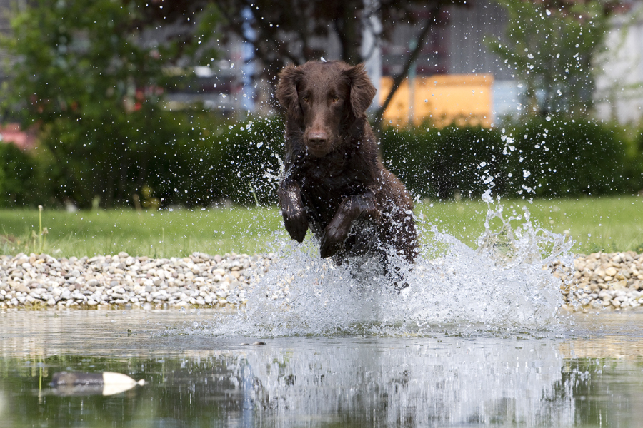 30. Mai 2011: Im Anschluss an die Züchterversammlung am 21.05. sind wir in unsere Dummytrainingsferien nach Frankreich gefahren. Wir haben dort eine schöne aber auch anstrengende Woche auf einem französischen Chateau in den Ardennen verbracht. Insgesamt waren wir 13 Menschen und 18 Hunde in allen Alterstufen. An den ersten 3 Tagen haben wir im weitläufigen Schloßgarten trainiert und die letzten 2 Tage an der Maaß. Gestern sind wir dann von Frankreich aus zum Kampioenschapsclubmatch in Holland gefahren. Jack wurde in der offenen Klasse von der Richterin Sandra Stevenson mit "vorzüglich" bewertet, aber leider nicht plaziert. Es war aber trotzdem ein sehr schöner Tag und eine tolle Show (232 gemeldete Flats!)