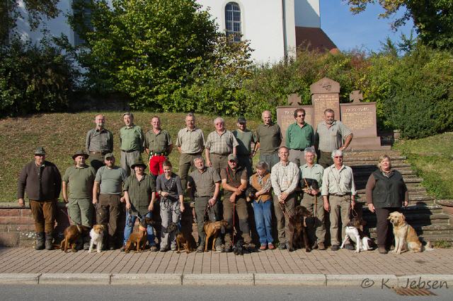 25. September 2011: Gestern hat Jack die JEP/S bei der Kreisjägervereinigung Mosbach (Ba-Wü) als Suchensieger bestanden! Die Richter lobten vor allem seine gute Schweiß- und Wasserarbeit! Heute auf dem Field Trial in Erstein lief es nicht so gut, Jack war sehr unruhig und erhielt deshalb ein non classé. Er war morgens gleich im ersten Treiben als erster Hund an der Reihe. Es wäre wahrscheinlich besser gewesen, wenn wir uns den Ablauf, welcher sehr gewöhnungsbedürftig ist, vorher einmal aus der Ferne hätten anschauen können, auch weil es für uns unser erster Field Trial war, denn zwei Treiben später war Jack beim Zuschauen schon viel gelassener. Aber es noch kein Meister vom Himmel gefallen.