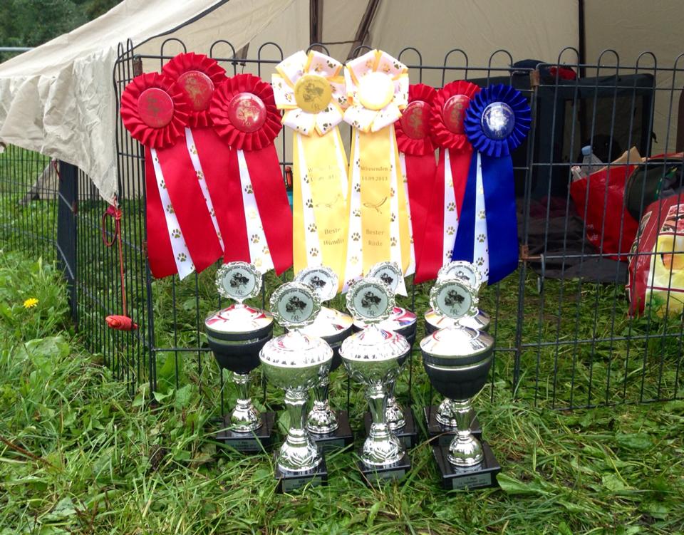 24. Juni 2013: Wir sind zurück aus unseren Trainingsferien in Frankreich und es gibt einiges zu berichten. Am 08. und 09. Juni waren wir auf der Jubiläumsausstellung des DRC in Nörten-Hardenberg. Jack erhielt am Samstag das V1 mit CAC und am Sonntag ein vorzüglich. Zudem wurde Julia mit Jette und Gad in der Paarklasse am Samstag BIS3 und in der Wildförstersee-Zuchtgruppe mit Faizah BIS1!!