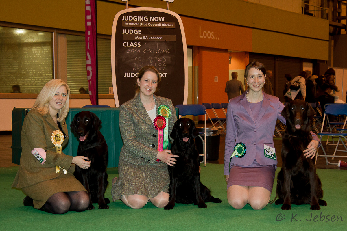 12. März 2013: Wir sind zurück aus England, mit der kleinen Ella im Gepäck und einem 4. Platz mit Jack in der Open Class auf der Crufts! Am Mittwochmorgen gings erstmal los nach Duisburg, Anna und den Frosch einsammeln, von da aus durch den Eurotunnel weiter nach Desford zu Gill. Am Donnerstag waren wir auf der Crufts zum Shoppen - ein Glück hatten wir eine Dachbox auf dem Auto :o) und am Freitag haben wir die Hunde getrimmt und gebadet. Samstag war dann der große Tag! Um 6:30 Uhr sind wir nach Birmingham aufgebrochen und wir waren alle total aufgeregt. Auf der Crufts lief es super für uns, Anna und der Frosch holten das BCC aus der Yearling heraus, Ethan wurde dritter in Special puppy und Jack wurde vierter in der Open! Für uns war das Motto „dabei sein ist alles“ und nach einem Blick in den Katalog erst recht. In der Open waren 18 Champions gemeldet (aus England, Schweden, Norwegen, Russland, Österreich, Frankreich, Italien, Irland – 27 entries, 4 abs), umso mehr haben wir uns natürlich gefreut, dass wir platziert wurden! An diesen Moment werden wir uns noch lang erinnern! Am Sonntagmorgen haben wir dann unsere Ella abgeholt und sind den langen Heimweg angetreten. Nachts um zwei waren wir wieder zurück in Mannheim.