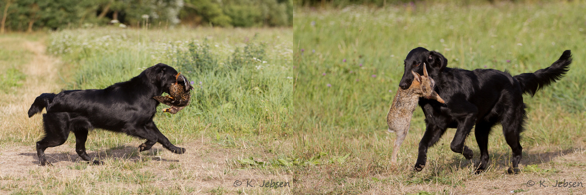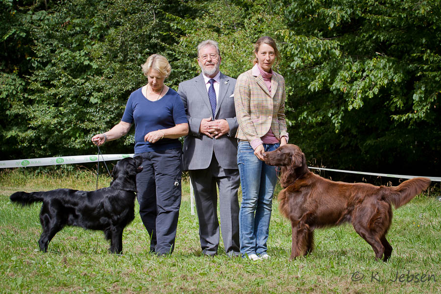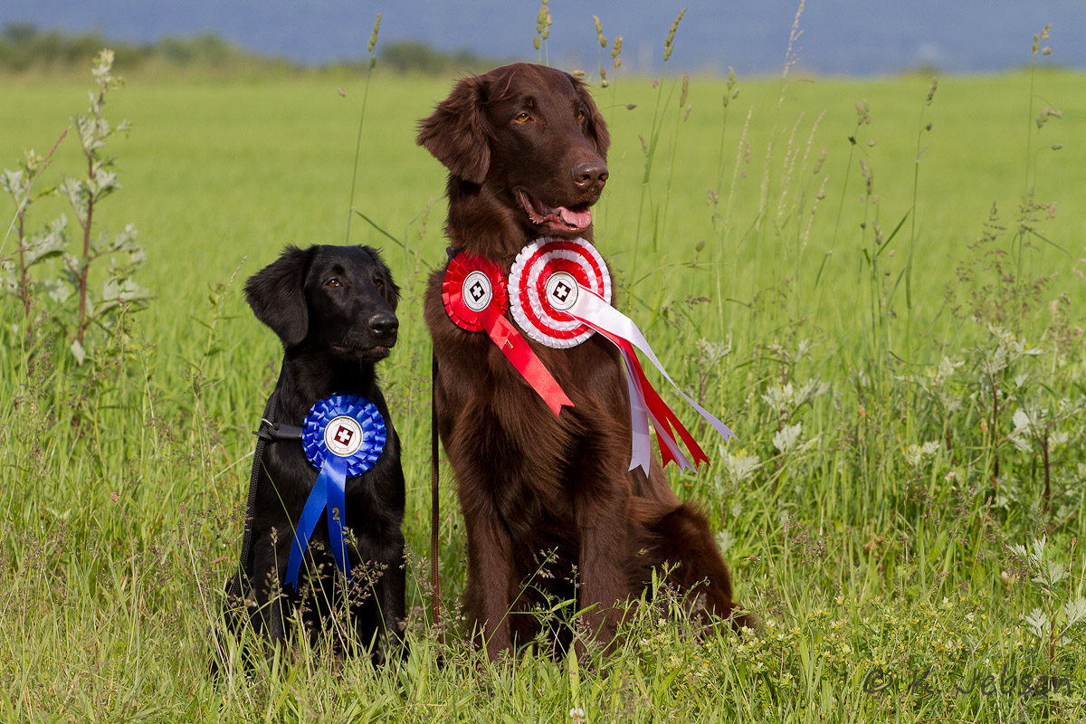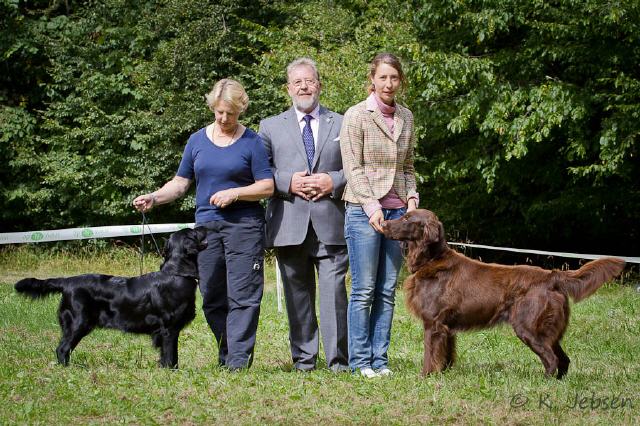 09. September 2013: 2 Tage im Zeichen der Flatcoats - auch dieses Mal waren wir beim Süddeutschen Flattreffen nicht nur Teilnehmer, sondern auch Helfer. Wir hatten jede Menge Spaß und zwei tolle Tage. Beim Workingtest am Samstag waren es morgens 3 Einzelaufgaben und mittags zwei Aufgaben im gemischten Team, die auch zur Einzelwertung zählten. Wie vor zwei Jahren war Jack morgens sehr lustig drauf (wahrscheinlich sprang Kristofs Stimmung auf ihn über und er nahm nicht alles so ernst), aber mittags hat er sich dann wieder berappelt und gute Arbeit abgeliefert. Am Sonntag auf der Show lief alles super, Ella bekam ein vv1 und Jack wurde Best in Show! Den Funparcour bestritten Julia und Jack zusammen und schlugen sich wacker. Berichte folgen demnächst. Heute war die erste Entenjagd, Jack hat super nachgesucht und Ella hat brav im Auto gewartet und konnte etwas von der Atmosphäre schnuppern.