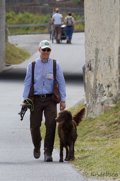 Unser Ziel war allerdings S-chanf und so fuhren wir am Samstag um 10 Uhr weiter, da wir glücklicherweise erst nachmittags dran waren. Die Reiseroute über den Albula-Pass war landschaftlich traumhaft. In S-chanf angekommen suchten wir vergeblich nach Schildern, wo es zum RCS-Event ging. Weit und breit nix zu sehen. Wir waren schon wieder draußen aus dem Ort, als wir uns entschieden wieder umzudrehen und nochmal nach Schildern zu schauen und siehe da, da waren sie, der Weg war nur von der Flüela-Pass Seite ausgeschildert, na toll. Im Suchengelände angekommen trafen wir viele bekannte Gesichter. Auf die Frage hin, wie wir hergekommen waren und unsere Antwort darauf (über den Albula-Pass) bekamen wir zur hören: "mutig, mutig"... na toll, anscheinend war niemand sonst über diesen Weg gekommen. Der WT lief für Jack und Kristof gut, die Aufgaben und das Gelände verlangten viel von den Hunden ab. Am Ende wurde es ein geteilter 6. Platz als drittjüngster Hund!