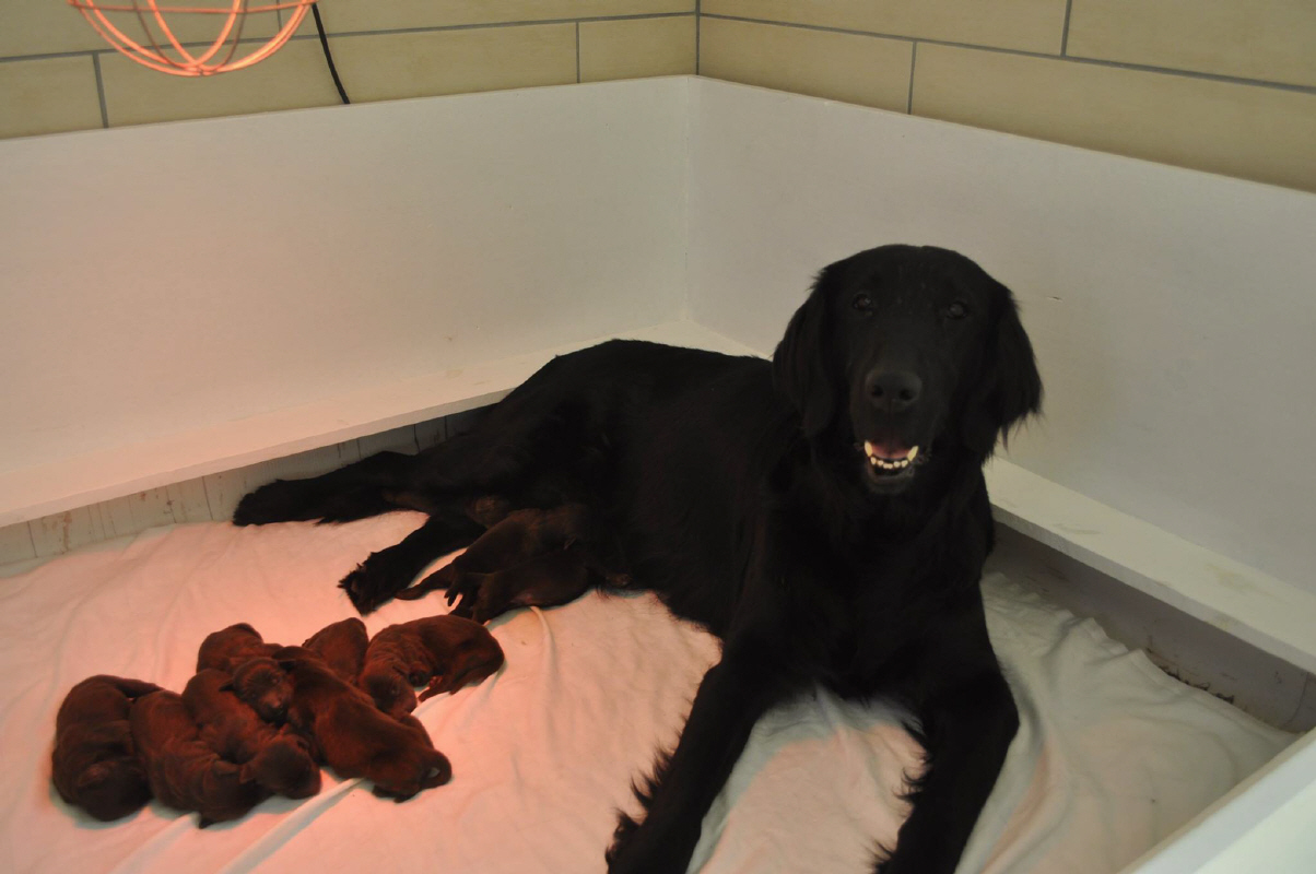 23. März 2015: Herzlichen Glückwunsch an den F-Wurf und unseren Braunbär, der heute 6 Jahre alt geworden ist. Seinen Geburtstag durfte Jack wieder auf Sylt feiern und bekam diesmal ein besonderes Geschenk - Fee's Welpen kamen in der Nacht zur Welt, 6 Rüden und 4 Hündinnen, alle liver! Das muss man erstmal hinkriegen!